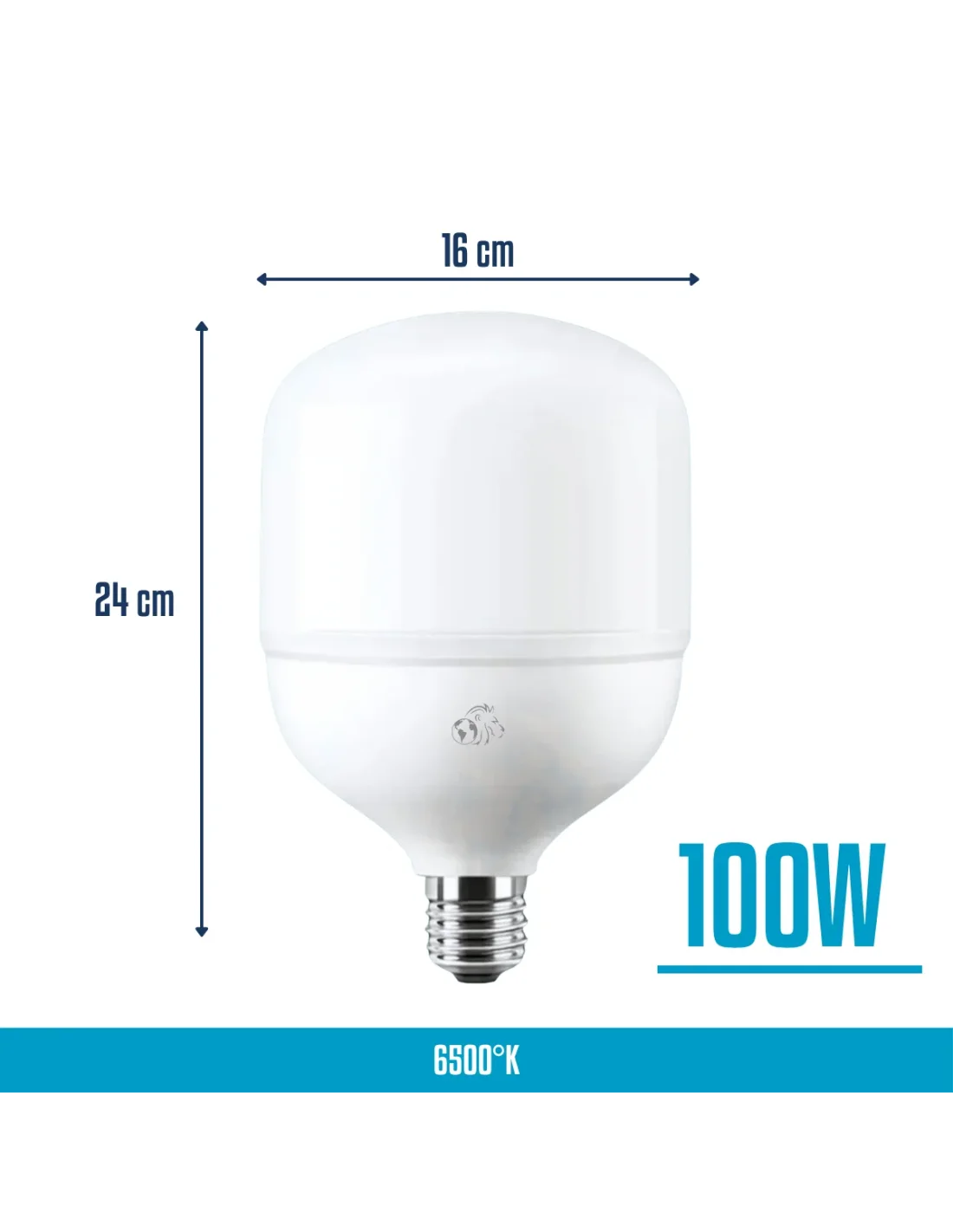 Lámpara alta potencia LED de 100W diseñada para entornos industriales y comerciales que requieren iluminación clara y eficiente. Fabricada en aluminio y PVC, ofrece una estructura liviana y resistente que optimiza la disipación térmica y prolonga la vida útil del producto. Con base E27 de instalación simple y 8000 lúmenes de luz fría, brinda una iluminación intensa, uniforme y funcional para depósitos, talleres y espacios de trabajo exigentes.