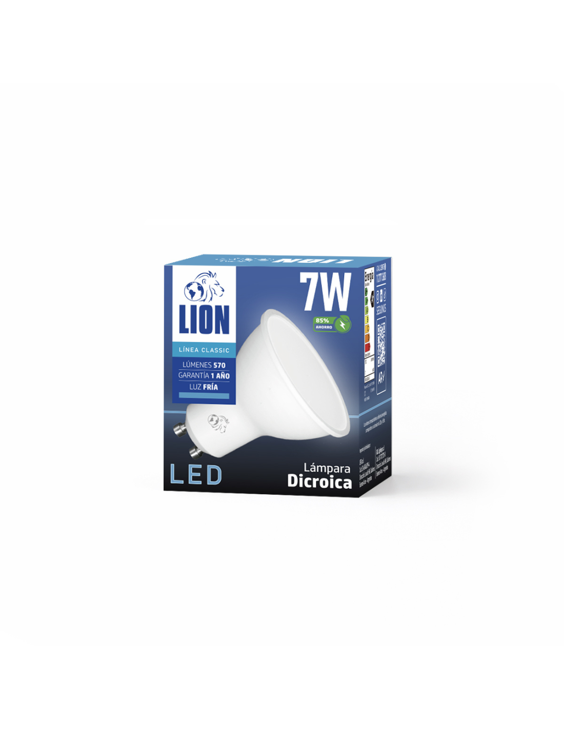 Lámpara dicroica LED esmerilada de 7W, ideal para iluminación puntual y definida en espacios comerciales y residenciales. Fabricada en aluminio y PVC, con base GU10, ofrece 570 lúmenes de luz fría y un ángulo de apertura de 120° que garantiza una distribución amplia y uniforme. Eficiencia, durabilidad y fácil instalación en un formato compacto.