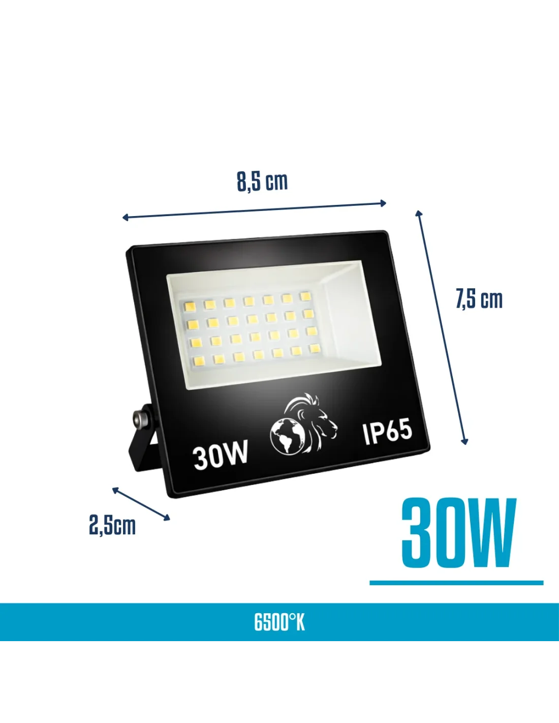 Reflector LED de 30W fabricado en acero y vidrio, diseñado para aplicaciones domésticas que requieren iluminación eficiente y confiable. Cuenta con 2400 lumenes. Cuentan con protección IP65. Su estructura robusta garantiza buena protección y durabilidad. Compacto, funcional y de alto rendimiento lumínico, ideal para patios, frentes, cocheras y espacios exteriores de uso residencial.