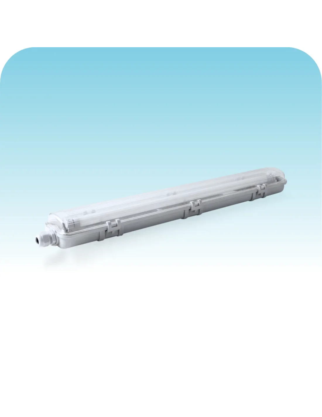 Listón estanco para tubo LED T8 de 9W, con base G13 y protección IP65, ideal para entornos expuestos a humedad, polvo o salpicaduras. Fabricado en PVC + PC, ofrece alta resistencia al impacto y excelente hermeticidad, garantizando seguridad y durabilidad en aplicaciones industriales, comerciales o exteriores que requieren iluminación protegida y confiable. Dentro de sus accesorios, incluye presacable.