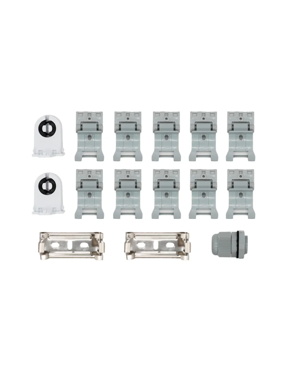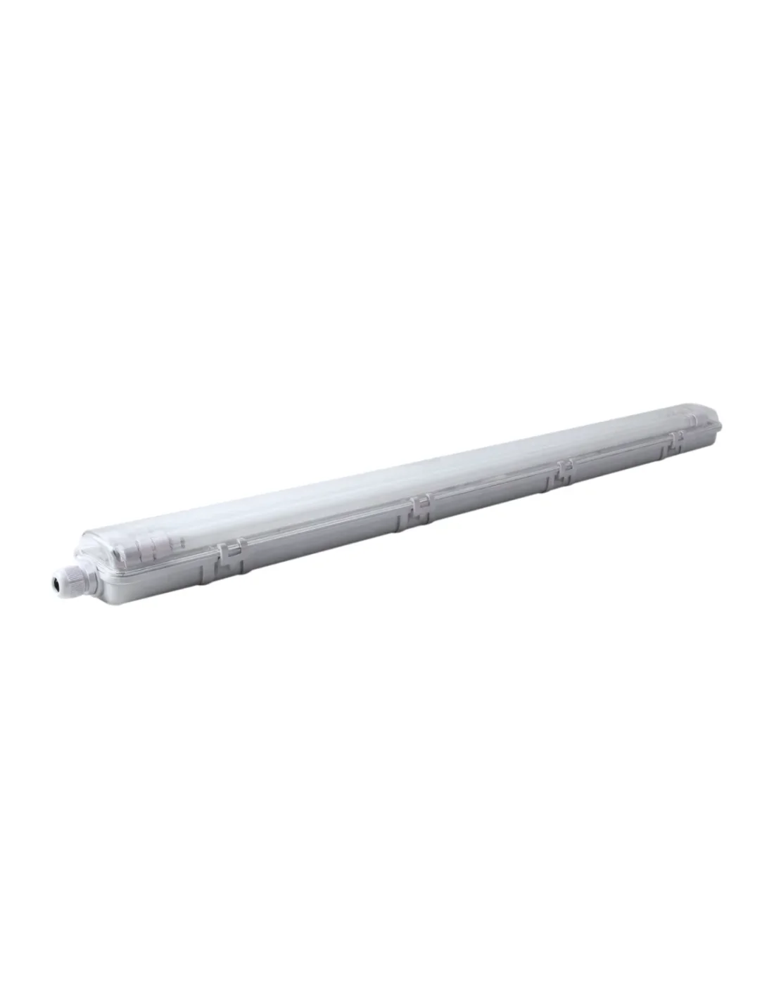 Listón estanco doble para tubos LED T8 de 18W, con base G13 y protección IP65, diseñado para alojar dos tubos y brindar mayor nivel de iluminación en una misma unidad. Fabricado en PVC + PC, ofrece alta resistencia al impacto y excelente hermeticidad frente a polvo y humedad, garantizando seguridad, durabilidad y rendimiento confiable en aplicaciones industriales, comerciales o exteriores. Dentro de sus accesorios, incluye presacable.