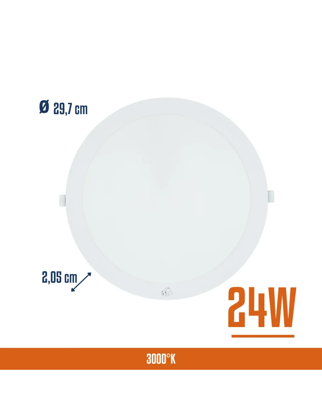 Panel LED Embutir Redondo 24W Luz Cálida Potencia superior y máximo confort visual. Fabricado en aluminio y PVC, asegura excelente disipación térmica y larga vida útil. Incorpora tecnología backlight para una iluminación uniforme y placa LED reemplazable para un mantenimiento más eficiente. Con 1920 lúmenes, brinda rendimiento real y óptima eficiencia. Ideal para crear ambientes cálidos y acogedores con mayor intensidad lumínica.