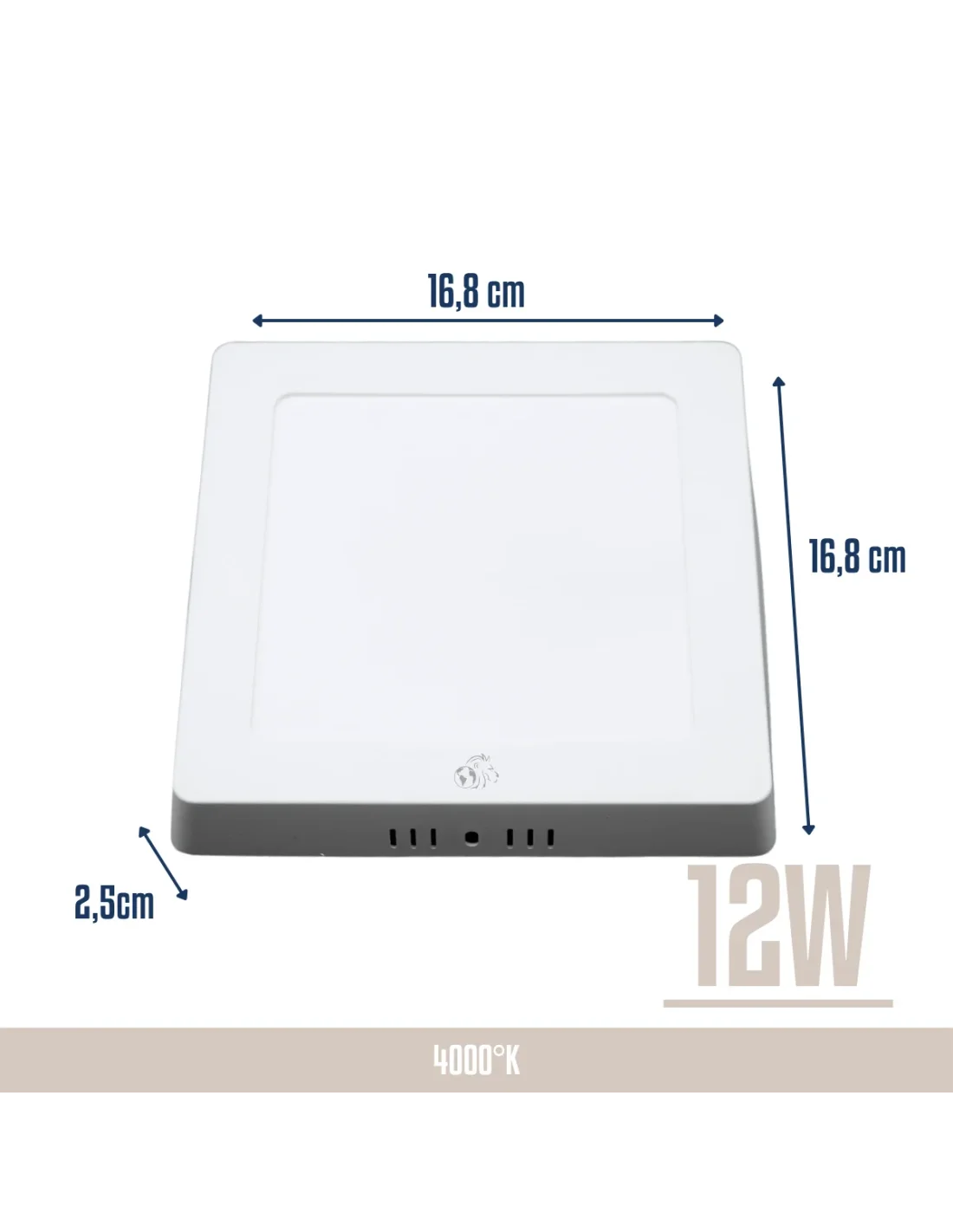 Panel LED Aplicar cuadrado 12W- Luz Neutra Diseño compacto para instalación directa en superficie. Instalación simple y rendimiento confiable. Fabricado en aluminio y PVC, lo que prolonga la vida útil del producto. Brinda 960 lúmenes de iluminación neutra, uniforme y confortable, ideal para generar ambientes acogedores con luz definida y equilibrada.