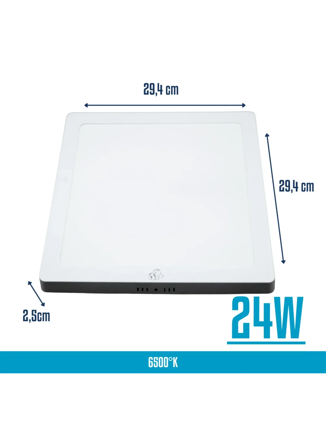 Panel LED Aplicar cuadrado 24W- Luz Fría Diseño compacto para instalación directa en superficie. Instalación simple y rendimiento confiable. Fabricado en aluminio y PVC, lo que prolonga la vida útil del producto. Brinda 1920 lúmenes de iluminación fría y clara, ideal para generar ambientes que requieren luz definida y equilibrada.