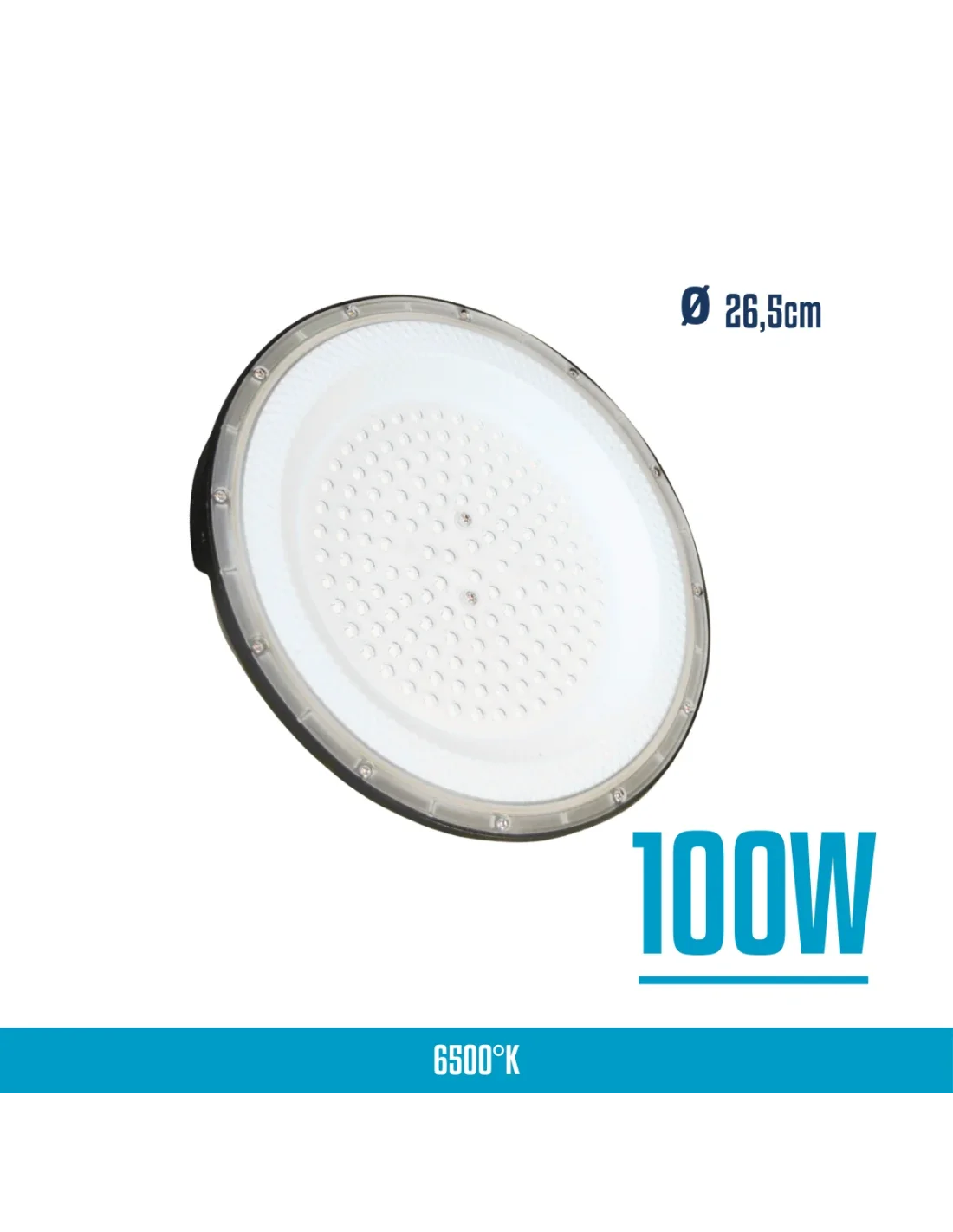 El UFO LED 100W está diseñado para aplicaciones industriales que requieren resistencia superior. Fabricado en aluminio y PC (policarbonato), su estructura lo vuelve antivandálico, ofreciendo mayor protección frente a impactos. Con luz fría e IP65, garantiza un funcionamiento seguro ante polvo y humedad. Su formato tipo UFO brinda iluminación amplia y uniforme, ideal para depósitos, talleres y espacios de uso intensivo donde la durabilidad es clave.