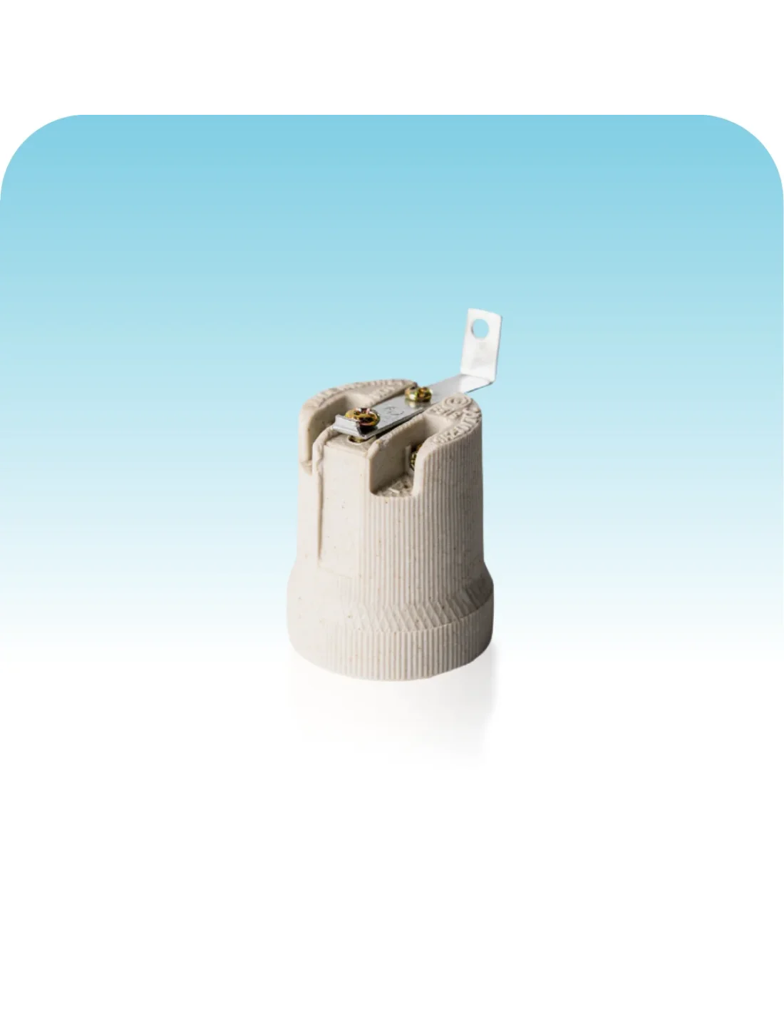 La base más robusta y segura para tus luminarias. Este portalámpara de cerámica E27 (porcelana) es el estándar de oro para quienes buscan una conexión eléctrica confiable y duradera. Su diseño está pensado para soportar altas temperaturas sin deformarse, siendo la opción ideal tanto para instalaciones domésticas como comerciales o industriales. Formato de portalampara tipo L.