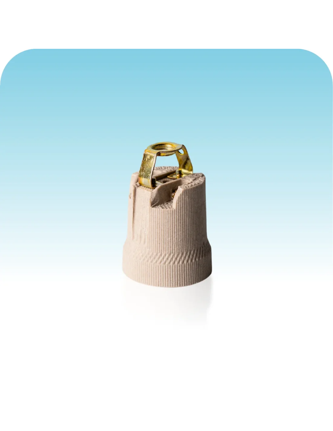La base más robusta y segura para tus luminarias. Este portalámpara E40 de cerámica (porcelana) es el estándar de oro para quienes buscan una conexión eléctrica confiable y duradera. Su diseño está pensado para soportar altas temperaturas sin deformarse, siendo la opción ideal tanto para instalaciones domésticas como comerciales o industriales.