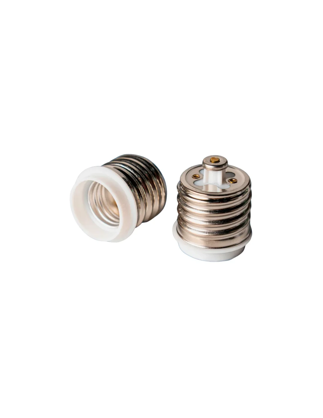 Multiplicá las posibilidades de tus luminarias sin cambiar la instalación. Este adaptador profesional permite utilizar lámparas de gran porte (rosca industrial E40) en portalámparas estándar (rosca convencional E27). Es la solución técnica ideal para quienes necesitan mayor potencia lumínica en galpones, depósitos o espacios industriales utilizando infraestructura preexistente.