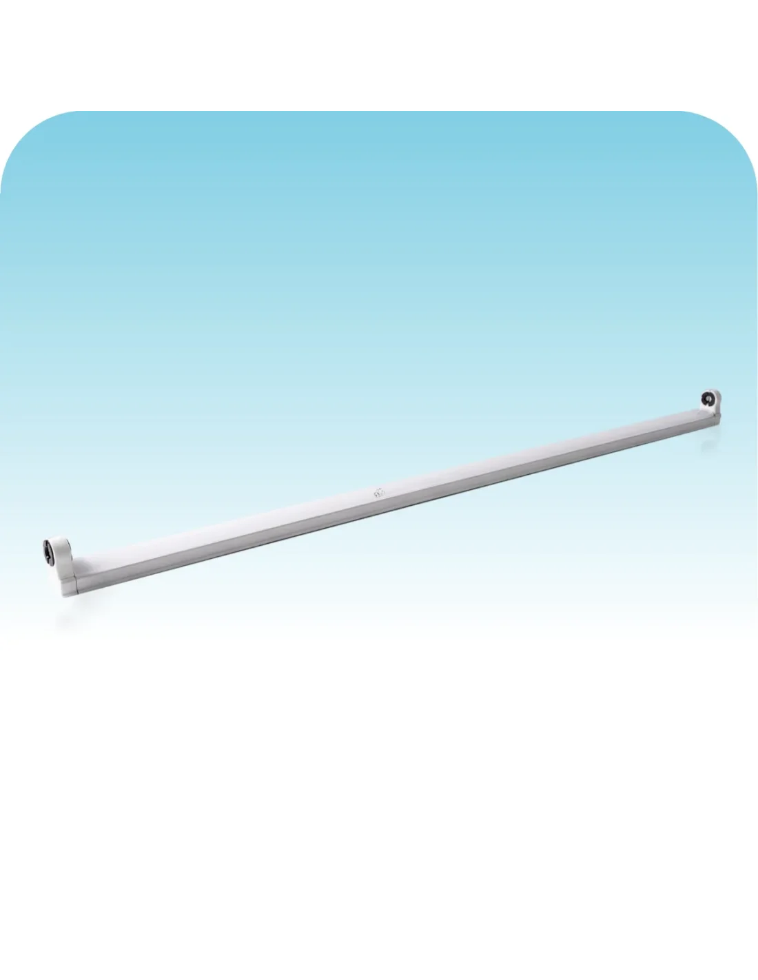 Listón de chapa de acero simple para tubo LED T8 de 48W, con base G13. Diseñado para alojar un tubo de gran formato, brindando una solución firme y segura para aplicaciones de alta potencia. Estructura robusta y resistente que garantiza estabilidad y durabilidad en instalaciones industriales, depósitos y espacios de gran superficie que requieren iluminación lineal eficiente y confiable.