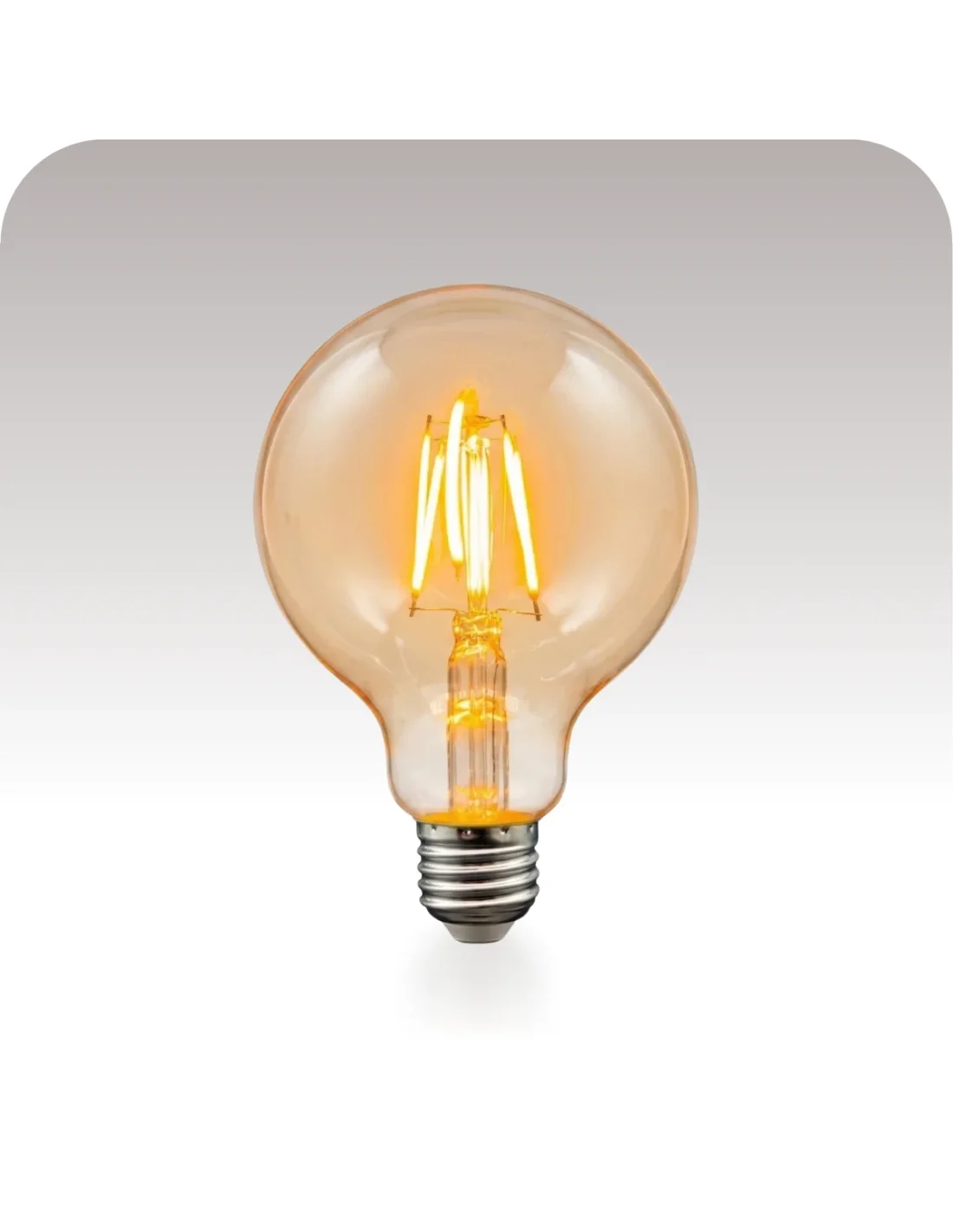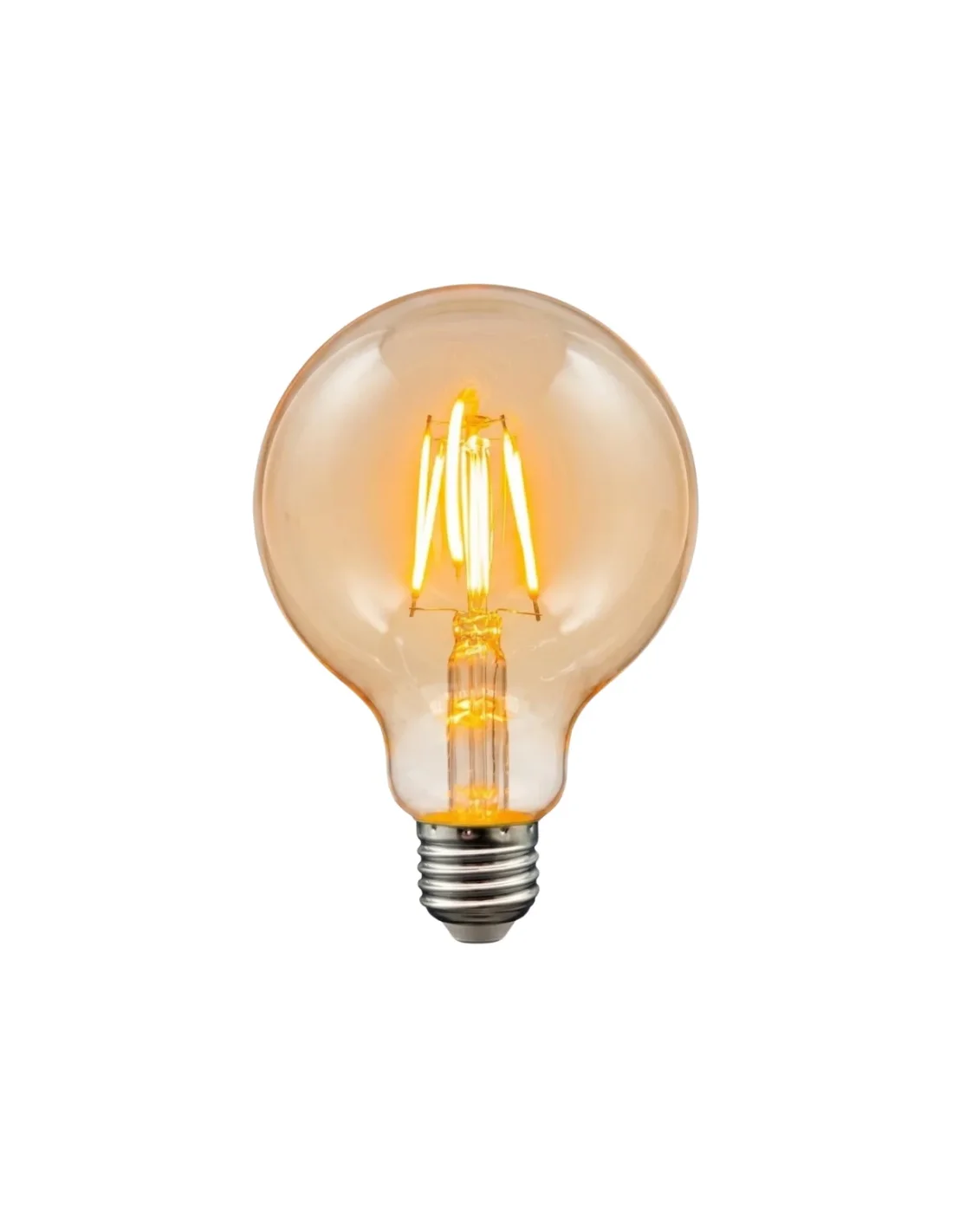 Lámpara filamento G95 de 4W, pensada para destacar en propuestas decorativas con una estética moderna y elegante. Su vidrio color ámbar y luz cálida de 320 lúmenes generan una ambientación suave y envolvente, ideal para espacios donde la iluminación acompaña el diseño. Con base E27, es perfecta para lámparas colgantes, restaurantes, bares y proyectos residenciales que buscan impacto visual con bajo consumo y alto valor estético.