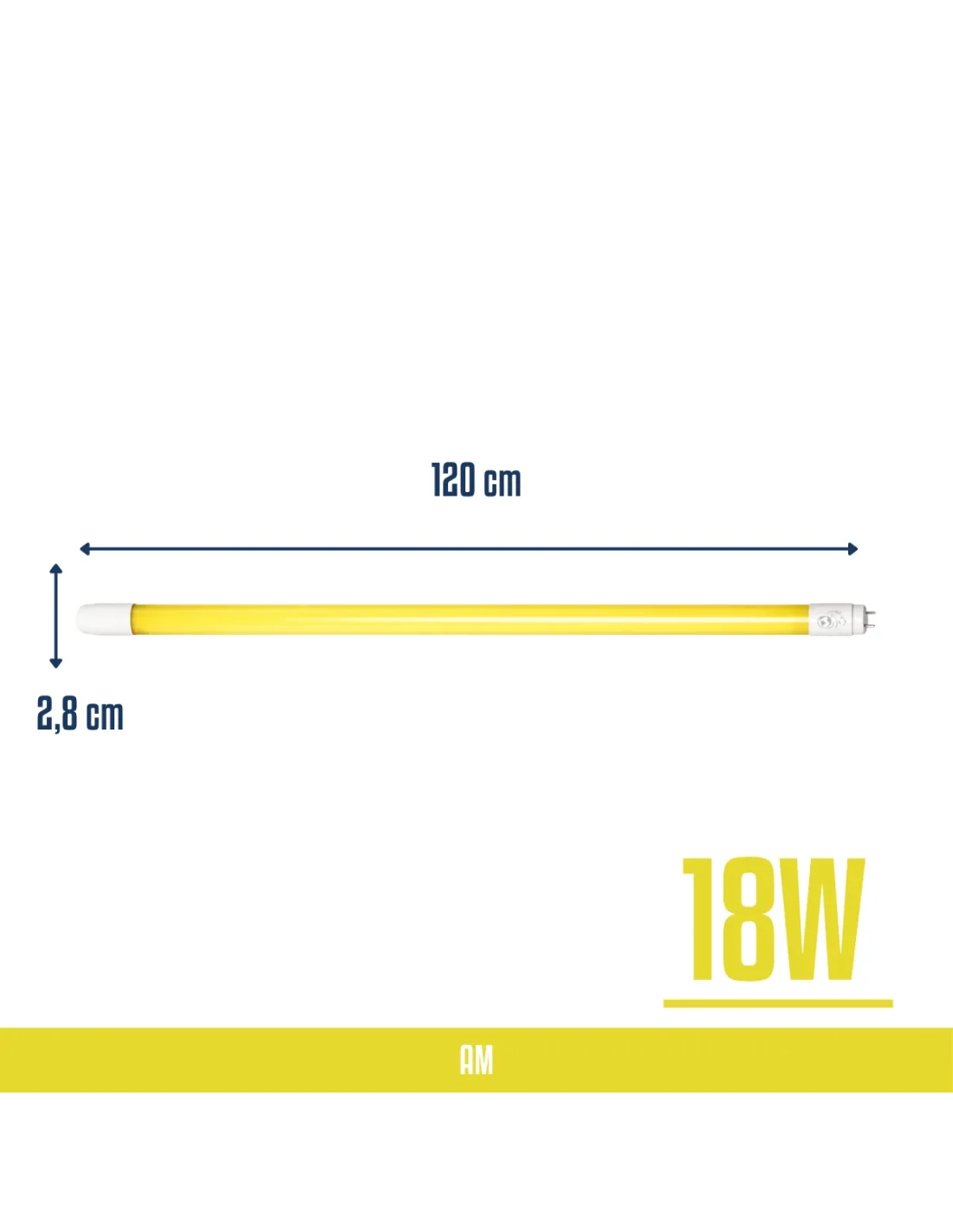 Tubo LED T8 de color amarillo de 18W y 1440 lúmenes, diseñado para ofrecer una iluminación intensa, uniforme y duradera. Incorpora chips internos de color, lo que garantiza una calidad lumínica superior y estable en el tiempo, a diferencia de los tubos pintados que se desgastan y pierden intensidad con el uso. Fabricado íntegramente en PVC, es más resistente a impactos y no se rompe, aportando mayor seguridad en la instalación y manipulación. Con base G13, es compatible con las conexiones estándar T8, ideal para aplicaciones comerciales, señalización y ambientaciones donde el color y la durabilidad hacen la diferencia. Su medida es de 120cm.