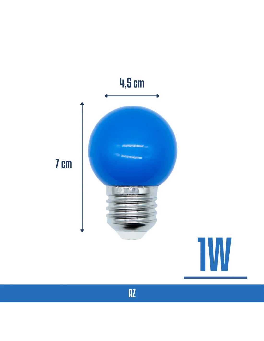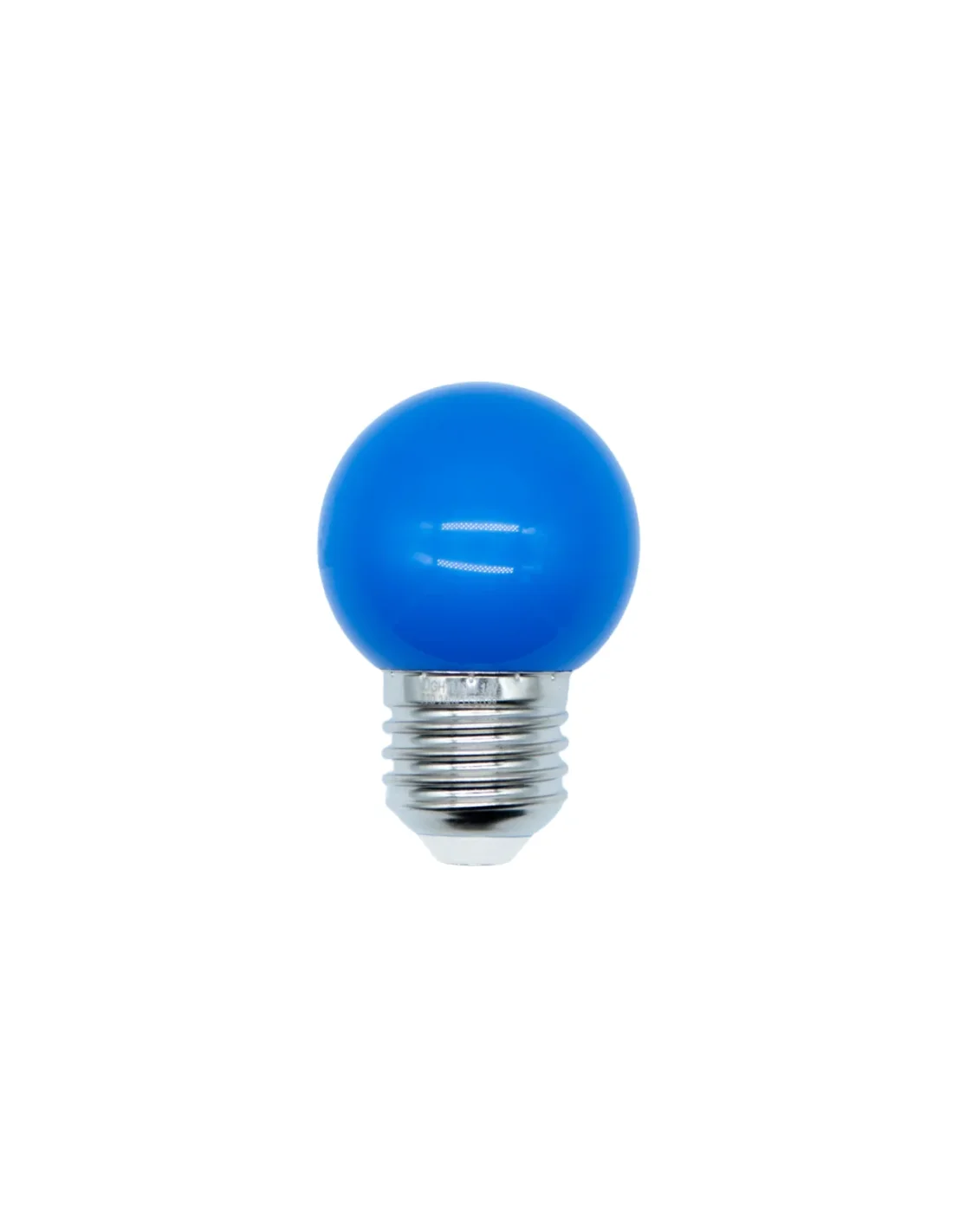 Lámpara gota de color azul E27 de 1W, fabricada en PVC resistente, ideal para eventos y ambientaciones decorativas. Ofrece una iluminación eficiente en lúmenes, perfecta para generar impacto visual con bajo consumo. Apta para guirnaldas, es una solución práctica y segura para exterior e interior, aportando color, durabilidad y fácil instalación en todo tipo de montajes decorativos.