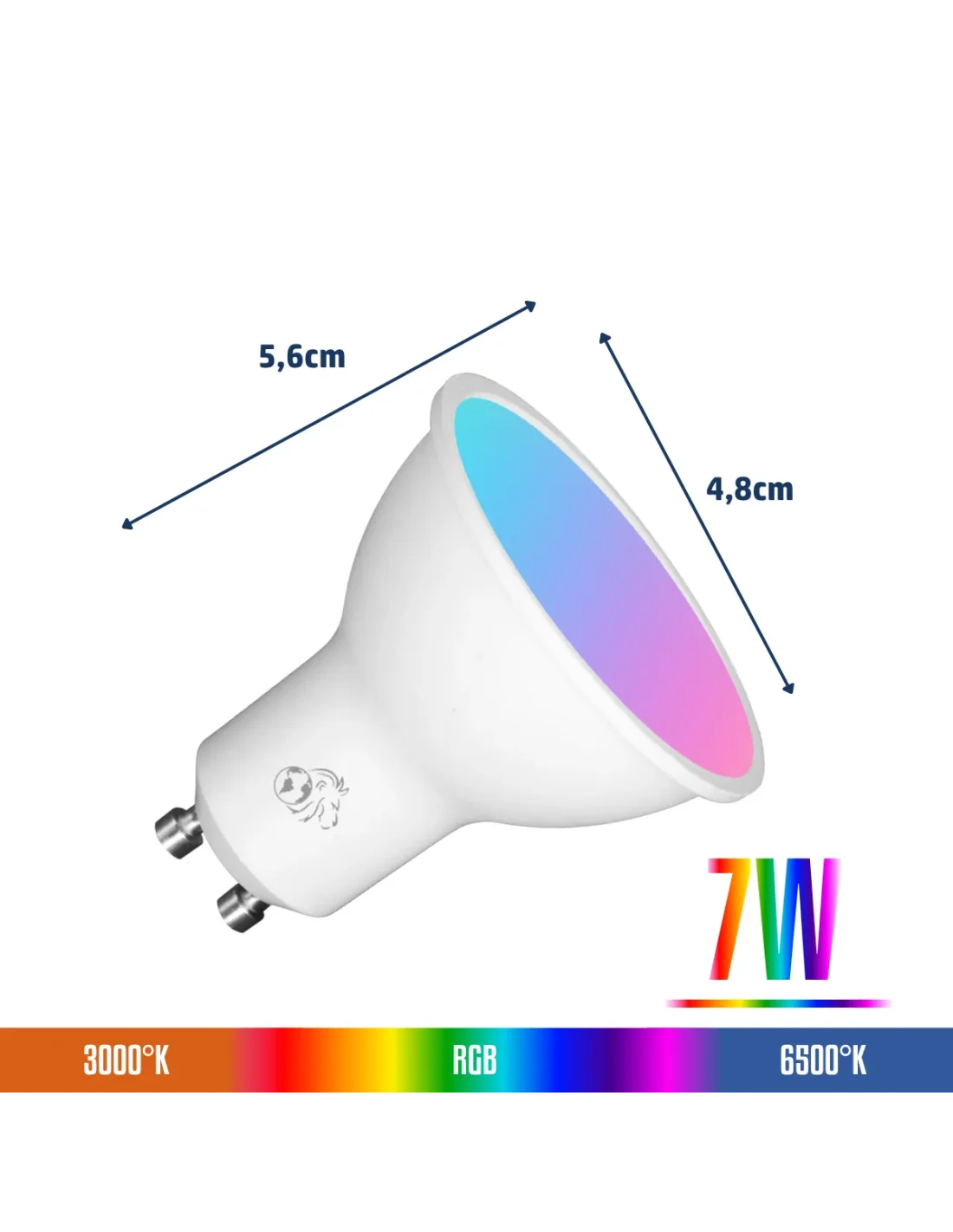 La lámpara dicroica Smart LED de 7W combina precisión lumínica y tecnología inteligente en un solo producto. Su formato dicroico brinda una iluminación más definida y focal, ideal para destacar sectores, generar acentos y aportar profundidad a cada espacio. Permite gestión total desde el celular a través de la App Tuya y compatibilidad con Alexa y Google Assistant. Es dimerizable, ofrece luz cálida, fría y RGB con más de 16 Millones de colores, e incorpora sincronización musical para crear escenas dinámicas y personalizadas. Compatible con iOS y Android, integra versatilidad smart, control absoluto y rendimiento profesional en una luminaria compacta y estratégica. Funciona mediante conexión WiFi 2.4 GHz exclusivamente.